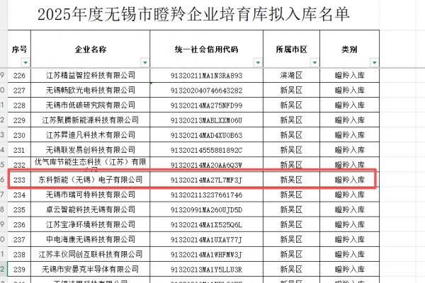 喜讯! 无锡市科技局近日公示了2025年度雏鹰、瞪羚、准独角兽企业培育拟入库企业名单,东科新能(无锡)电子有限公司成功入选瞪羚企业培育库。东科新能成功入选无锡市瞪羚企业培育库无锡市瞪羚企业培育工作体现了政府对高成长科技企业的重视与支持。通过入库培育,企业将获得更多发展资源和政策倾斜,有望加速成长为行业领军企业。对于东科